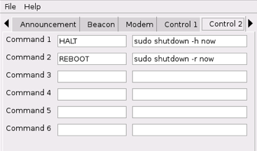 This type of setup provides protection against accidental shutdown as it requires both, the TO and the FROM, field to be changed before the RaPi will reboot/shutdown. Although it is possible to set your normal call sign in the "Control 1" tab "RPT 1 Callsign", this type of setup means an accidental bump of the dial which changes the TO field from CQCQCQ to HALT could cause an unintended shutdown.